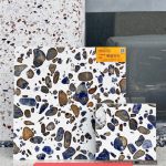 云浮市阿斯顿水磨石有限公司是一家专业从事荒料型预制水性无机水磨石生产销售,来样订制及设计合作的企业,也是广东首家荒料型预制水性无机水磨石大型厂家,阿斯顿荒料型预制无机水磨石(也称水泥基磨石)是将碎石、玻璃、等骨料拌入水泥粘接料制成混凝制品后经表面研磨、抛光的制品。以水泥粘接料制成的水磨石叫预制无机水磨石、具有可随意拼接花色、颜色均可自定义配制,施工方便等独特的优势,产品具有色泽艳丽,光洁度高,抗压耐磨,无辐射,质量稳定等特点,被广泛应用于宾馆、酒店、商厦、写字楼、机场、车站、地铁站 、体育馆等大型工地装修,也是家庭居室装修和工艺家私、壁炉制作的理想材料,用于室内外地面、墙面、桌面、楼梯、楼梯扶手、圆柱、灯饰、厨柜面等,是装饰空间里的首选绿色环保材料,无毒,无钾荃,零污染!